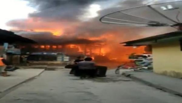 LAHAT, iNews.id - Kebakaran hebat terjadi di kawasan permukiman padat penduduk di Kelurahan Pasar Bawah, Kota Lahat, Sumatera Selatan, Minggu (4/10/2020). Kebakaran yang berlangsung selama dua jam itu mengakibatkan puluhan rumah ludes dilalap api.