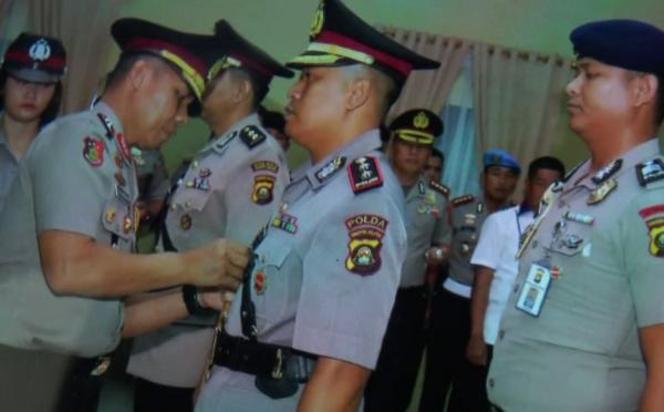 Kapolda Sumsel Irjen Pol Zulkarnain Adinegara memimpin langsung jalannya upacara pencopotan dan pelantikan di Gedung Aula Serba Guna Mapolres Prabumulih, Jumat (18/1/2019). Upacara itu tersebut dilangsungkan secara internal Polri dan tertutup untuk umum.