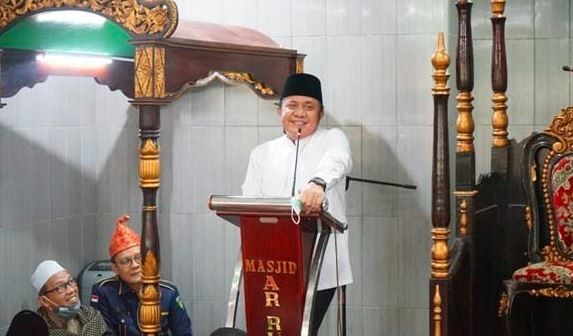 "Kami mewakili seluruh masyarakat disini merasa terhormat sekali dapat shalat jumat bersama pak Gubernur Heman Deru," katanya.